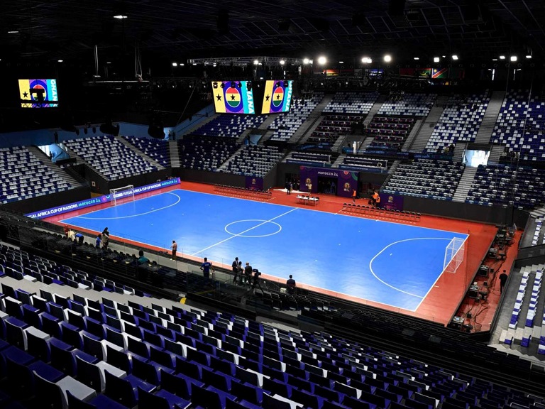 Salle Moulay Abdellah is an indoor sports arena located in Rabat, Morocco. The capacity of this sports facility is 10,000 people. The arena was recently the protagonist of the CAN de futsal Maroc 2024 championship. The photometric distribution of the floodlights was vital for the project, which allowed to achieve excellent uniformity, and, thanks also to the power of the floodlight, excellent lighting values were obtained, to the benefit of both players and spectators.